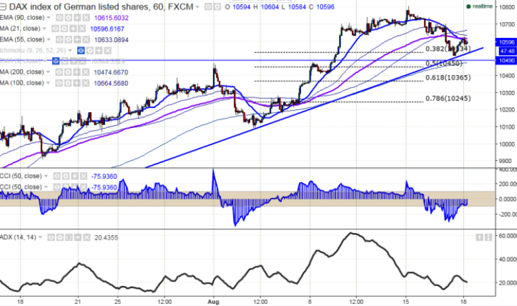 - In the hourly chart, DAX is facing strong resistance at 10661 (100 H MA).Any break above will confirm minor bullishness.