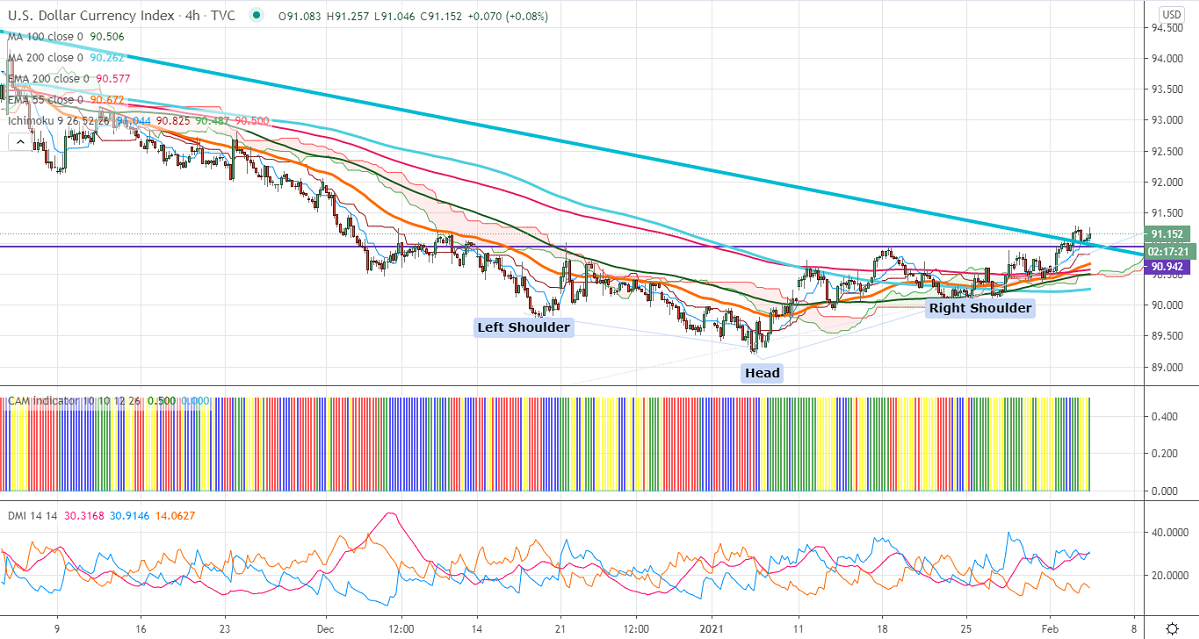 The index facing strong support at 90.80; any indicative break below will take the index to 90.69/90.35/90.