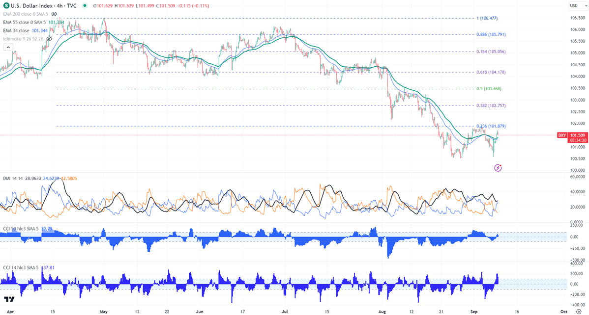 DXY showed a minor sell-off after a nice pullback. It hit a high of 101.91 and is currently trading around 101.51.