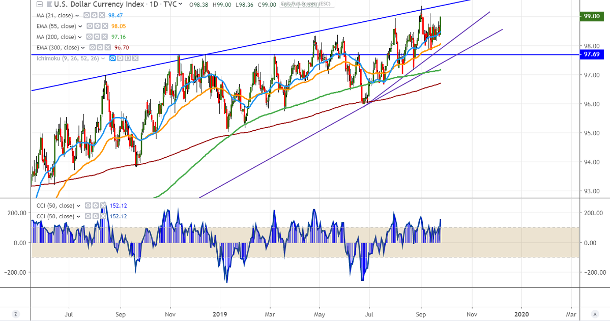 The near term resistance is around 99.10 and any break above will take the index to high 99.35 high made on Sep 3rd, 2019. The bullish continuation can be seen only above 99.35.