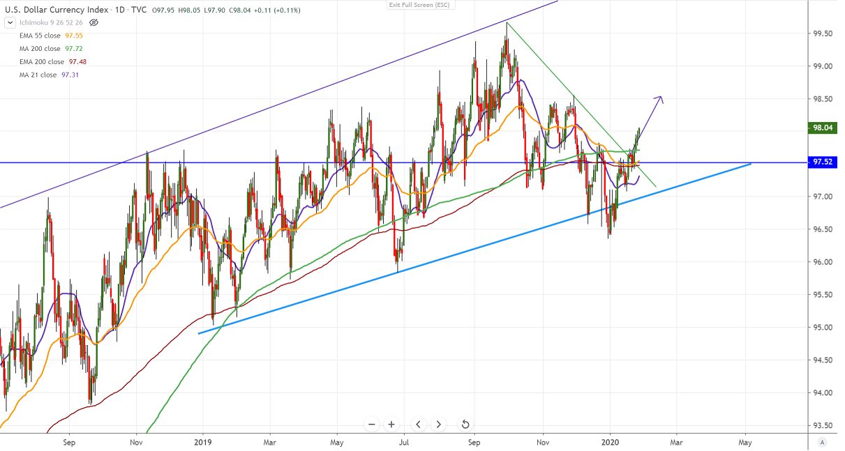 On the flip side, near term support is at 97.70 and any violation below will drag the index down till 97.30/97.