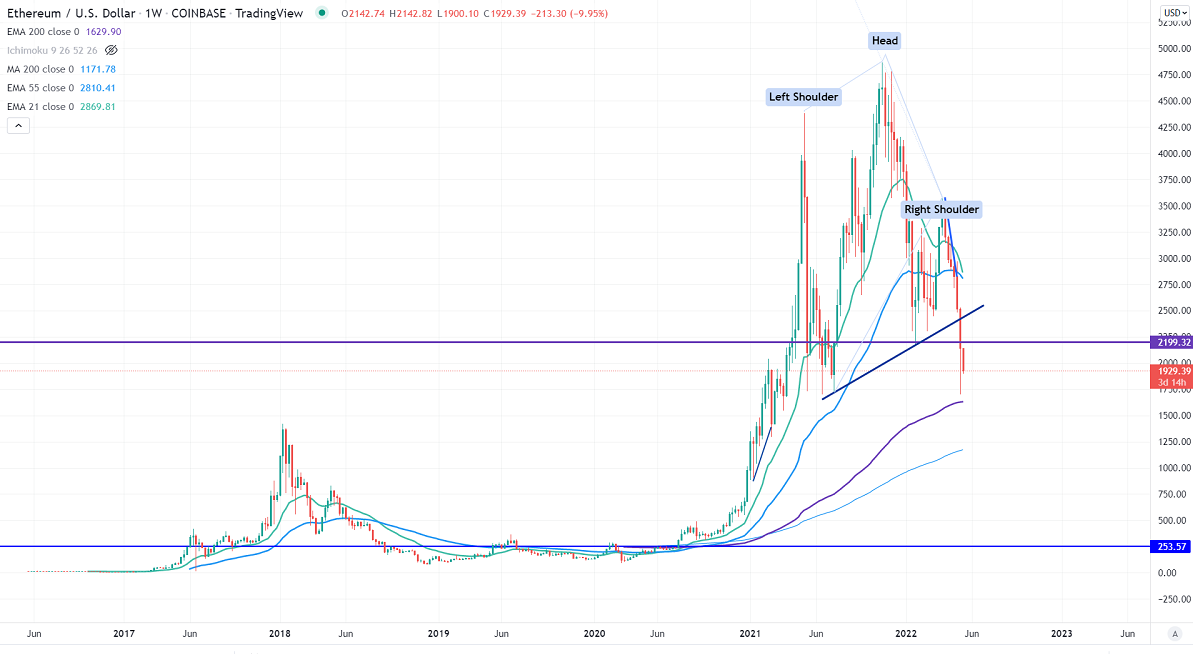 The bearish invalidation can happen if the pair closes above $2500. On the lower side, the near-term support is $1625 (200-W EMA). Any weekly close below targets $1168 (200-W MA).