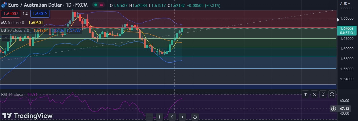 • EUR/AUD rose higher on Tuesday as euro was boosted by hawkish comments from European Central Bank President Christine Lagarde.