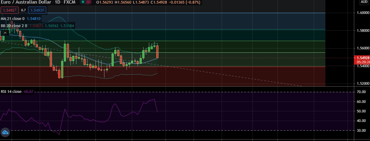 • Strong support is seen at 1.5478 (21 DMA ) and break below could take the pair towards 1.5391 (23.6% fib).