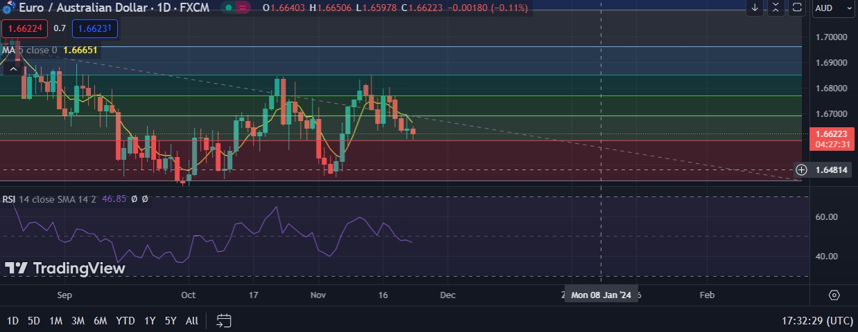• EUR/AUD declined on Thursday as Australian dollar was boosted by hawkish comments from its central bank chief.