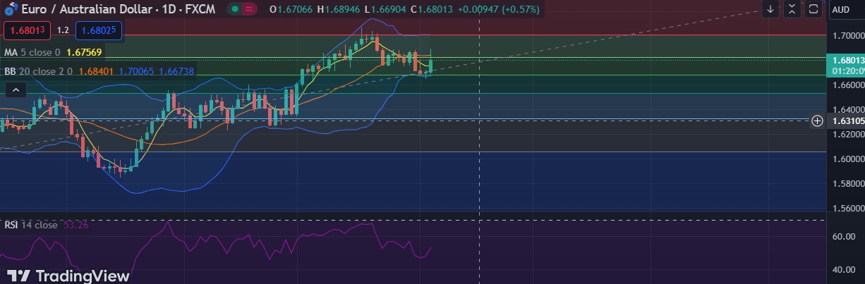 • EUR/AUD reaches 1.6895 after extending north from 1.6700 (Daily low) , EUR/AUD bulls need to close above 38.2%fib in order to keep the bias on gains.