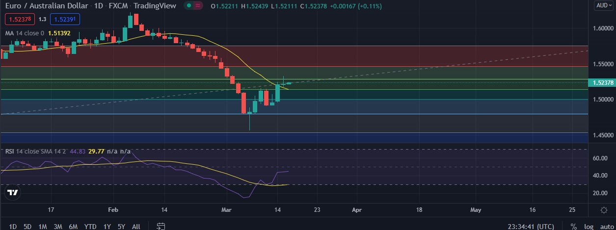 • EUR/AUD strengthened on Tuesday as optimism on Russia-Ukraine peace talks squeezed EUR shorts.