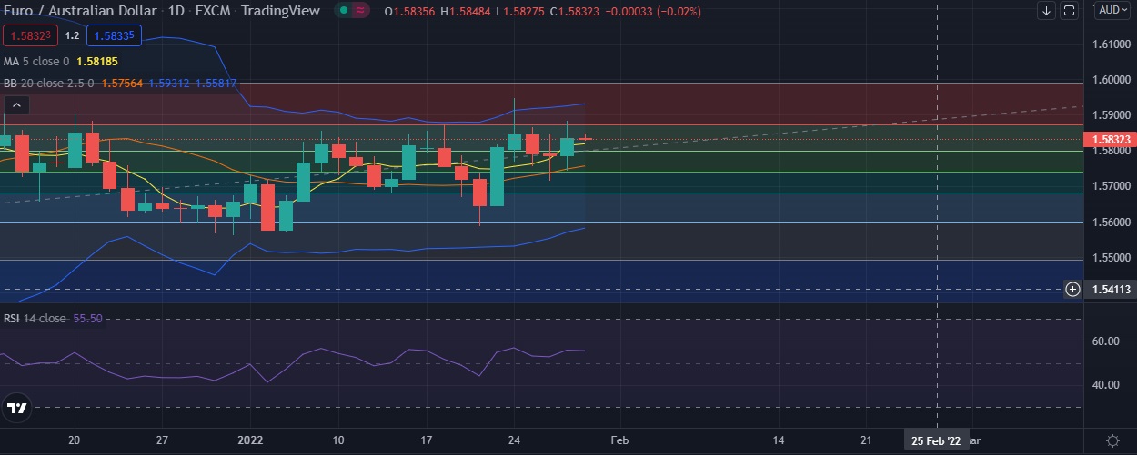 • Immediate support is seen at 1.5823 (5DMA) and break below could take the pair towards 1.5740 (38.2%fib).