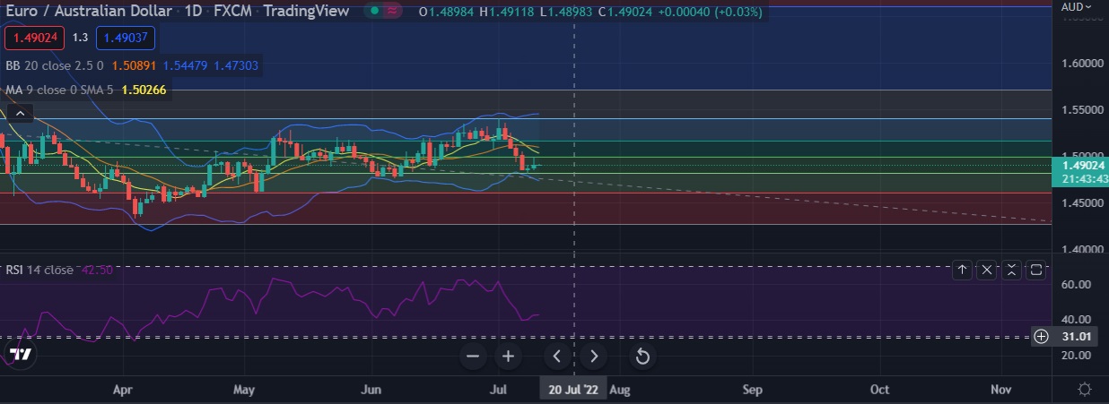 • EUR/AUD gained towards 1.4978 but retreated on fears maintenance shutdown of single pipeline carrying Russian gas to Germany, Nord Stream 1, might be extended due the war in Ukraine .