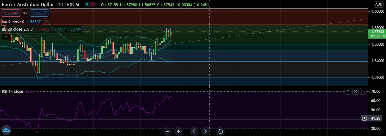 • EUR/AUD rally extended towards 1.5750 on Friday as Australian dollar was weighed down by as deteriorating China-Australia trade relations.