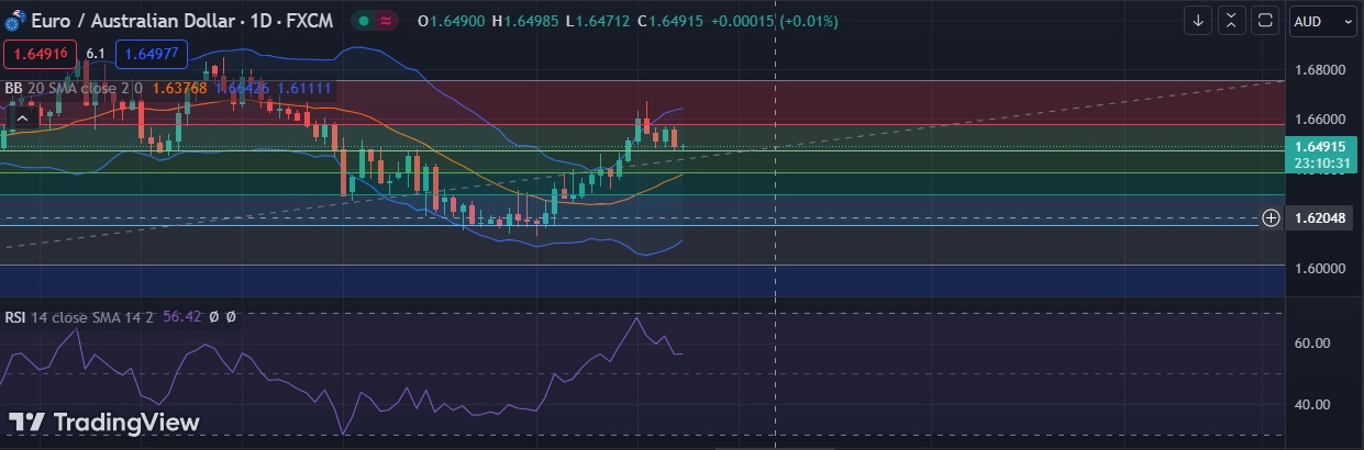 • EUR/AUD steadied around 1.6514 on Wednesday as euro gained despite mixed Euro zone business activity data.