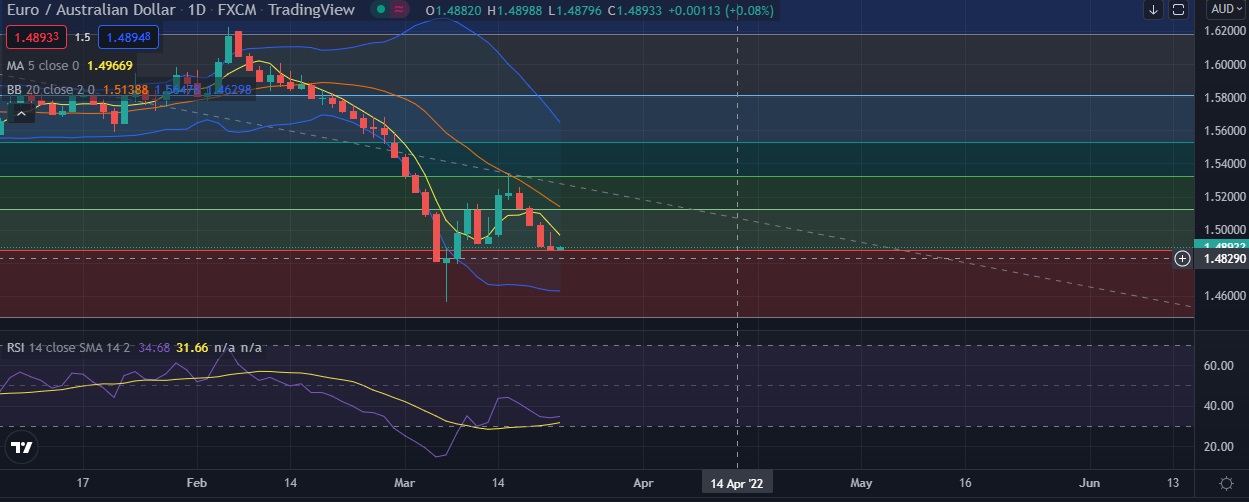 • EUR/AUD declined on Monday as diverging ECB-Fed policy paths weighed on the pair.