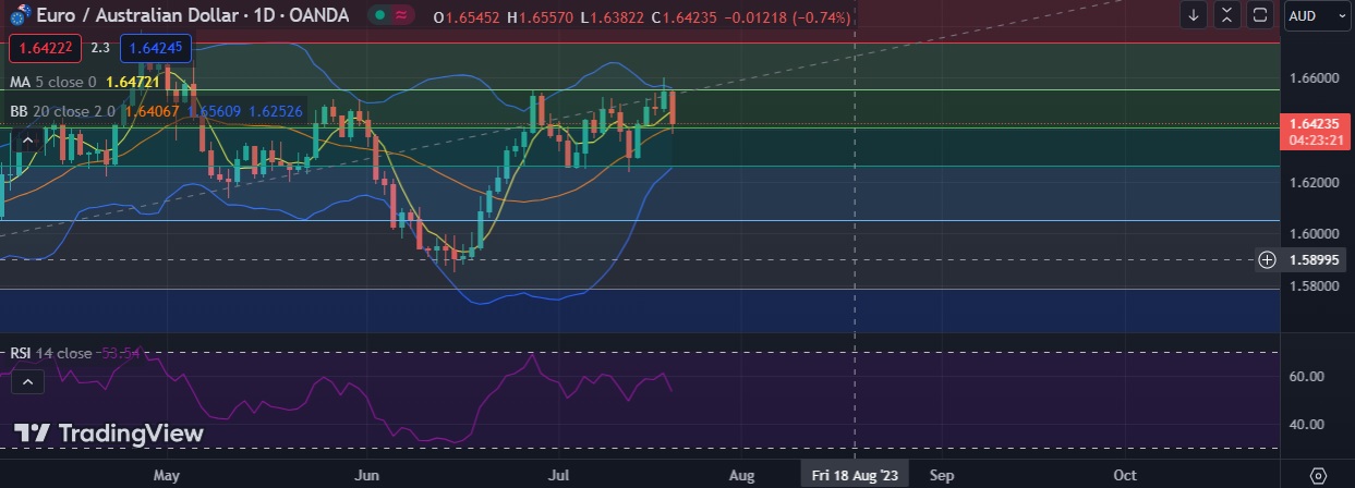 • Strong support is seen at 1.6403 (50%fib) and break below could take the pair towards 1.6292 (July 14th low).