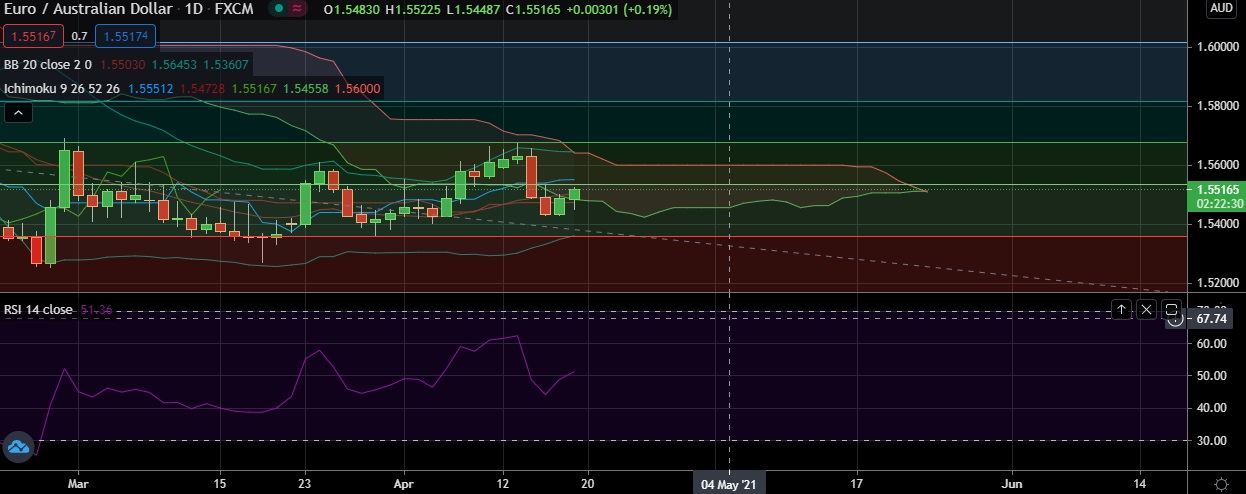 • Strong support is seen at 1.5480 (Ichimoku Cloud Base) and break below could take the pair towards 1.5358 (23.6%fib).