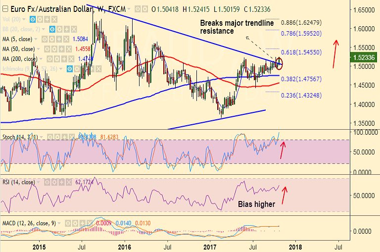 - EUR/AUD hits fresh 15-month highs at 1.52415 before paring some gains to currently trade at 1.5235 levels.