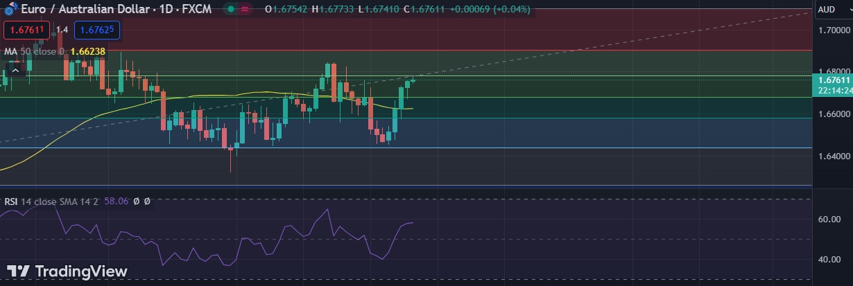 • A rally towards bigger resistance at 1.6845 is possible if EUR/AUD bulls overcome resistance at 38.2%fib.