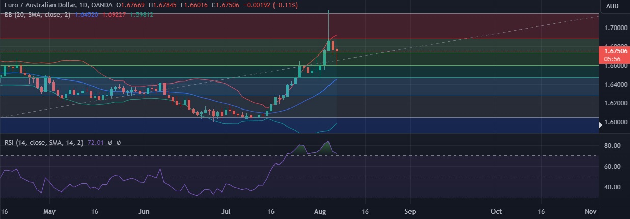 • EUR/AUD fell as low as 1.6599 before recovering towards but the pair is holding onto bear territory