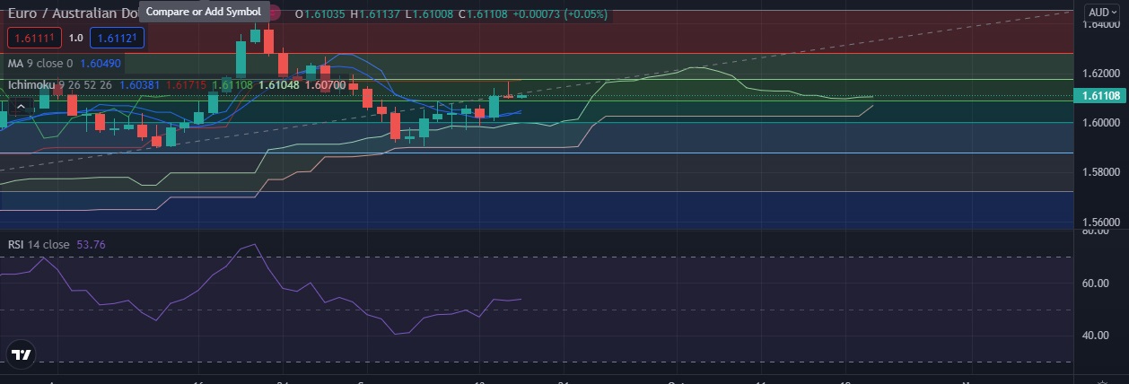 •After two days gain, pair has retreated to 1.6110 EUR/AUD may need a break above 23.6% fib to clear assault on 1.5700.