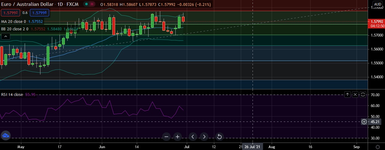 • EUR/AUD initially gained on Wednesday but pulled back some gains as worries about rising inflation and the Delta variant of the novel coronavirus capped gains.
