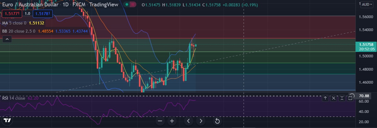 • EUR/AUD fall from intra-day high towards 1.5184 , however daily bullish hammer candle forms which is a sign bulls are in control.