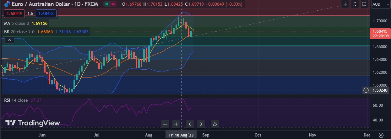 • EUR/AUD hovered around 1.6842 on Thursday as investors turned cautious ahead of Federal Reserve Chair Jerome Powell’s speech later this week.