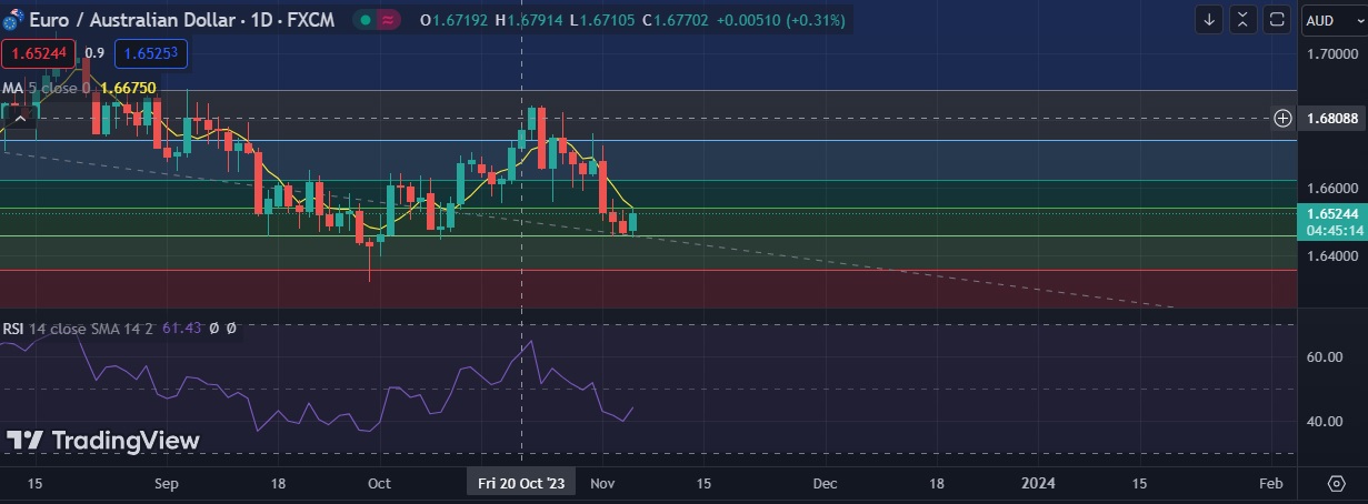• EUR/AUD traded as high as 1.6540 before retreating slightly to trade at 1.6522 .