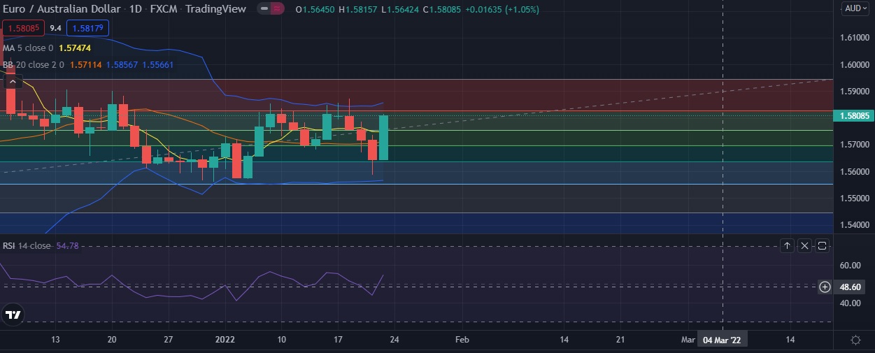 • EUR/AUD bulls confidence is running high, a rise towards 1.5900 is highly likely.