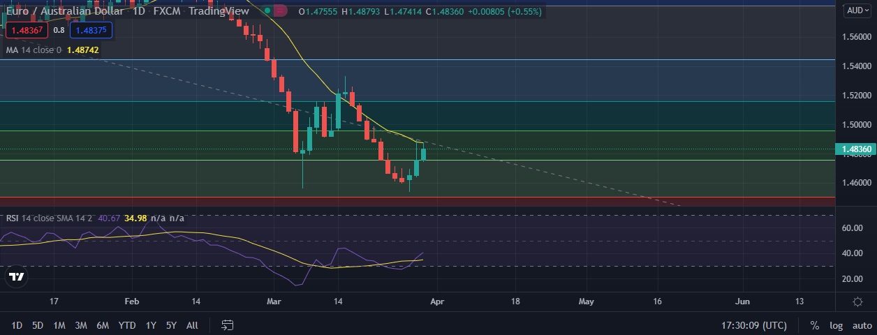 • EUR/AUD steadied on Wednesday as Ukraine-Russia negotiations continued to buoy euro.