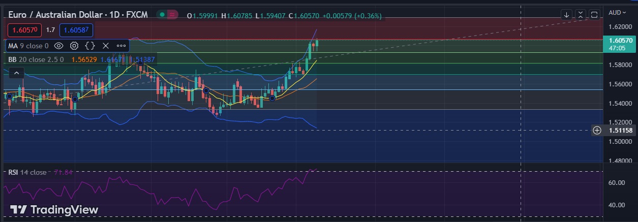 • EUR/AUD is now on course to register a close above 23.6%fib residence, chart points to bigger gains towards 1.6150 level.