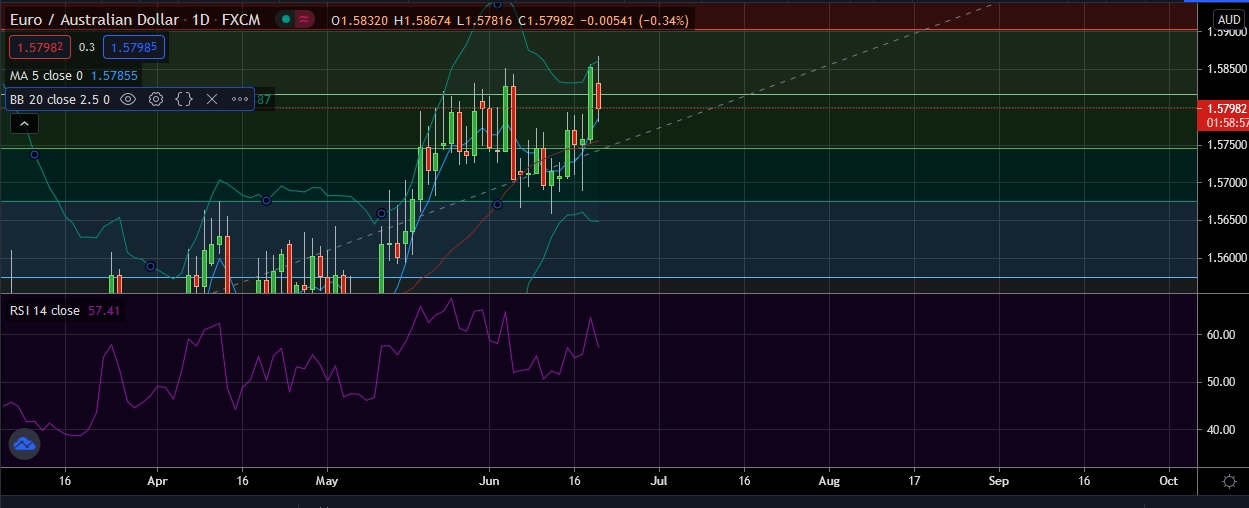 • EUR/AUD dips but found buyers at 1.5782 (5DMA), recovery lifts the pair above 1.5800. A break and daily close above 1.5815 (38.2%fib) will accelerate further gains.
