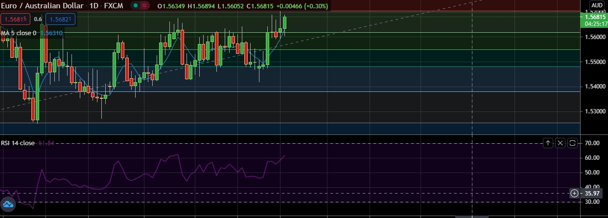 • EUR/AUD rally extended towards 1.5700 on Tuesday as upbeat risk sentiment drove investors into growth-related assets like the euro.