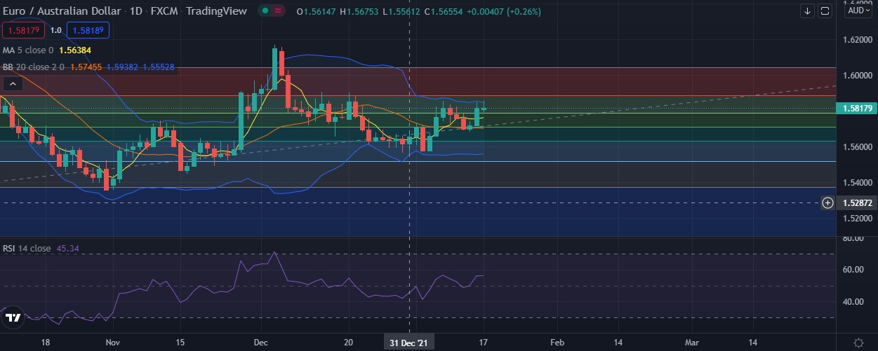 •EUR/AUD bulls confidence is running high, a test of the 1.5883 (23.6%fib) highly seem s likely.