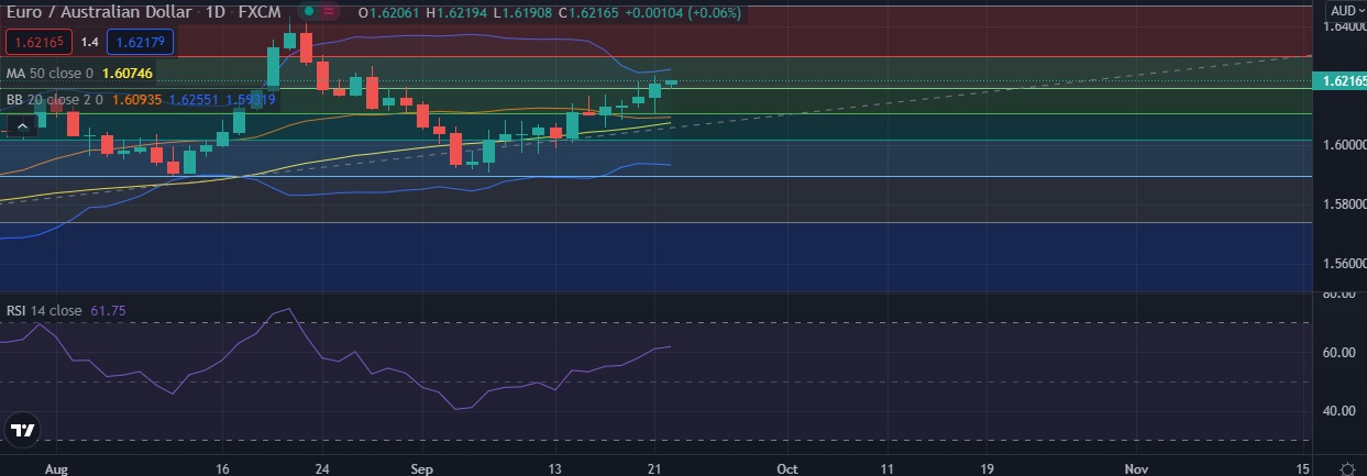 • EUR/AUD rally lifts the pair above 1.6200. A break and daily close above 1.6258 (Higher BB) will accelerate further gains.