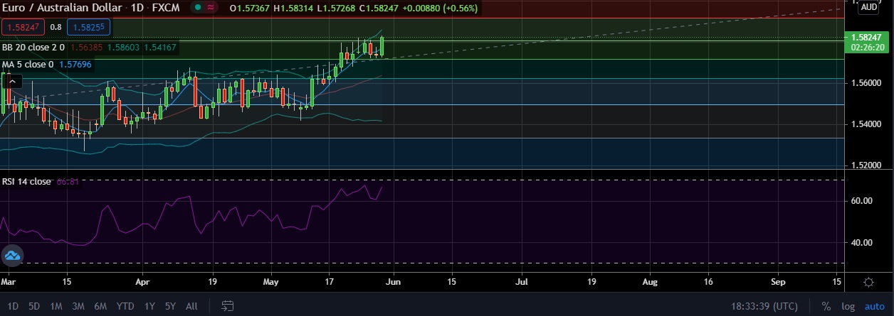 • EUR/AUD rally extended towards 1.6700 on Friday as euro was boosted after data showed Euro zone economic sentiment improved by more than expected in May.