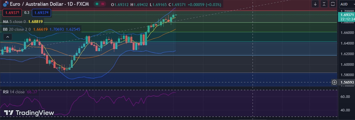 • EUR/AUD steadied around 1.6935 for third straight day as the pairs bullish streak continued on Wednesday.