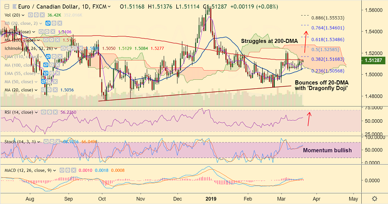 - Break above 200-DMA will confirm bullishness. Next immediate resistance lies at 1.5168 (38.2% Fib).