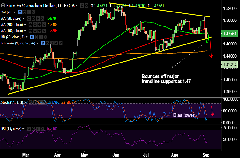 - The pair finds major trendline support at 1.47 levels and we see weakness on break below.