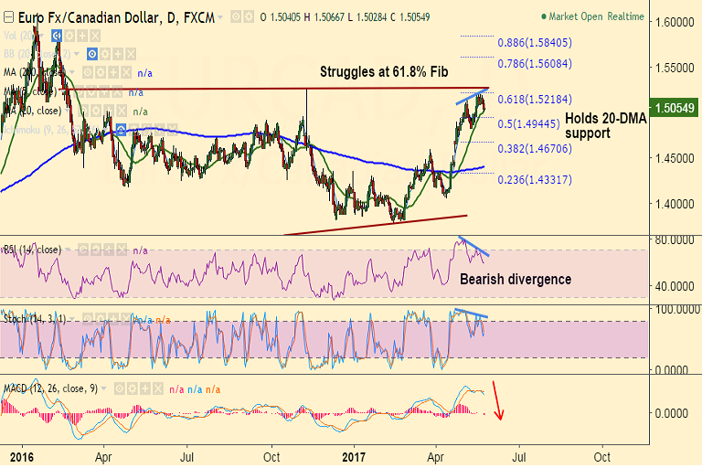 Support levels - 1.5010 (20-DMA), 1.4944 (50% Fibo 1.6105 to 1.3784 fall), 1.49, 1.4823 (May 10 low)