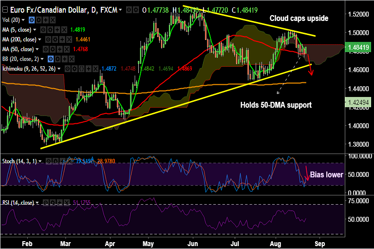 - EUR/CAD has taken support at 50-DMA at 1.4768. We see weakness only on break below.