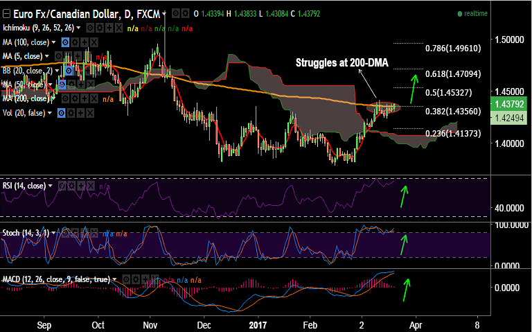 - EUR/CAD is attempting break of 200-DMA currently at 1.4354 which was capping upside in the pair from past many sessions.