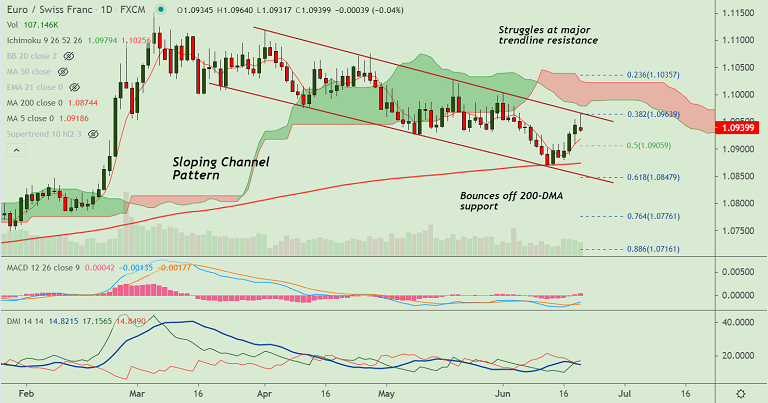 Resistance levels - 1.0965 (50-DMA, Channel top and 38.2% Fib), 1.0979 (cloud base), 1.1079 (55W EMA)