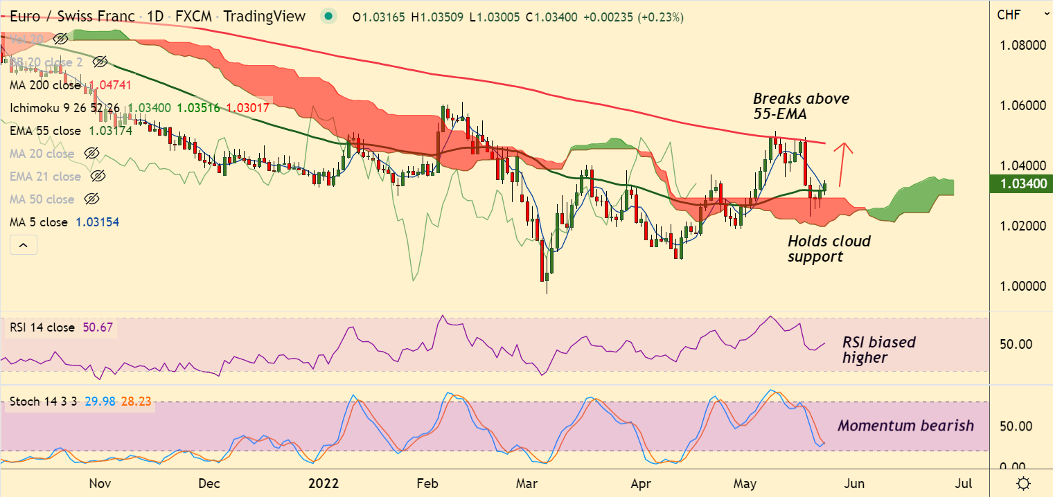 The pair is extending bounce off daily cloud support, breaks above 55-EMA, raising scope for further upside.