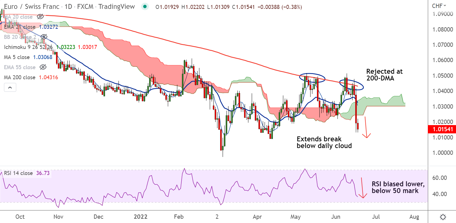 Summary: EUR/CHF is poised to extend hawkish SNB-led losses. Technical indicators also support downside in the pair.