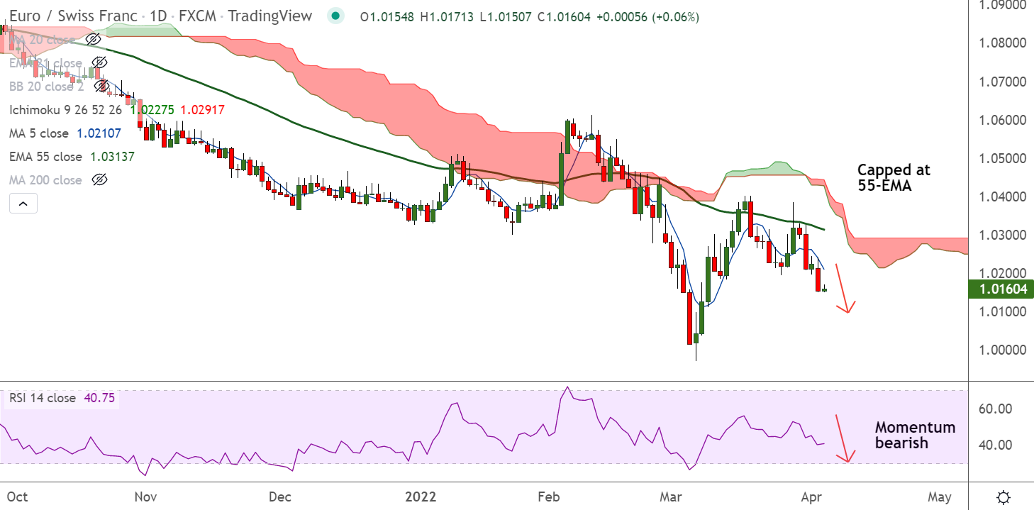 - EUR/CHF was trading largely muted at 1.0156 at around 08:55 GMT