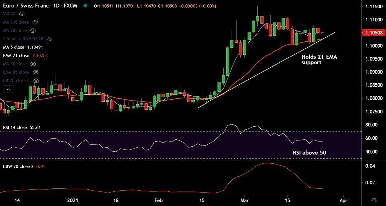 Earlier in the day, the Swiss National bank (SNB) kept interest rates unchanged at -0.75% as widely expected and upgraded its GDP and inflation forecasts for 2021.