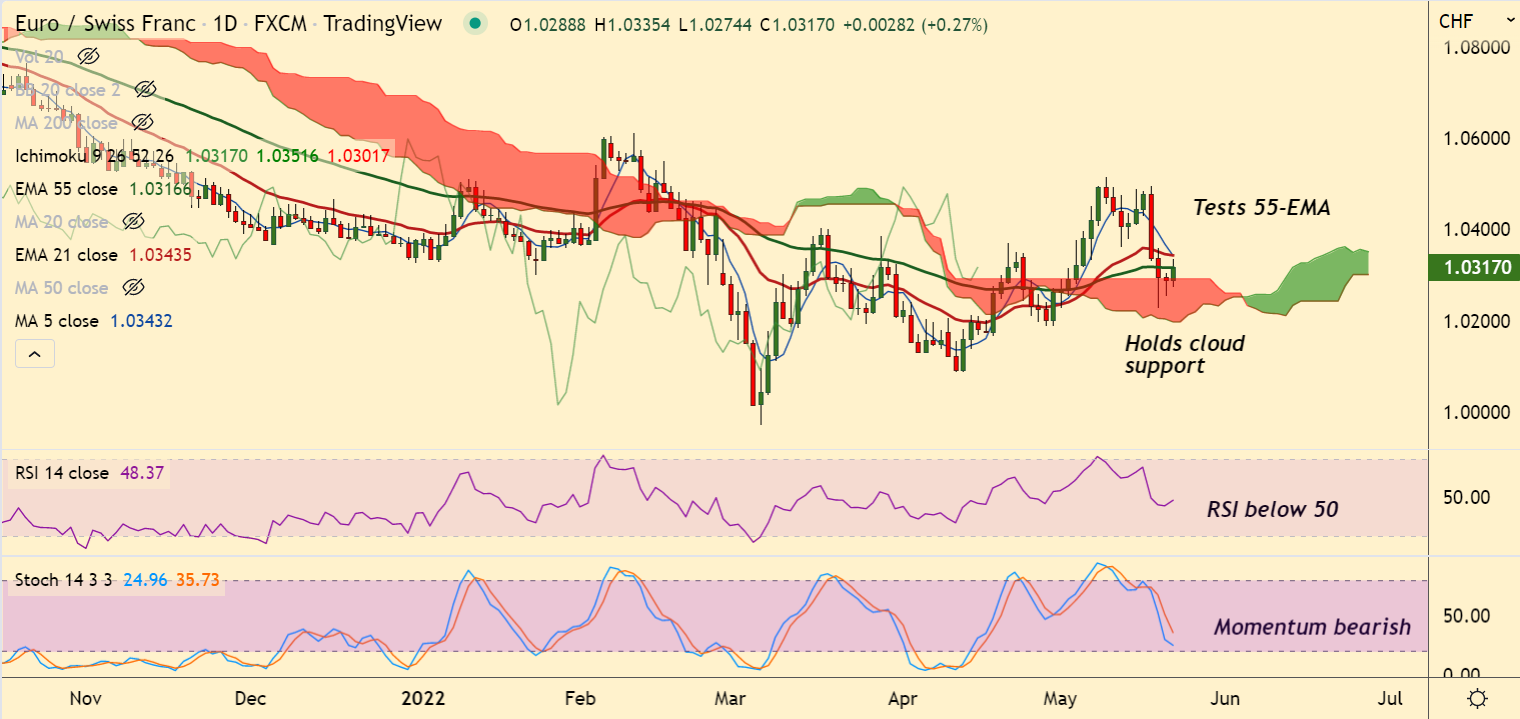The pair has bounced off daily cloud support, tests 55-EMA and is on track for further upside.