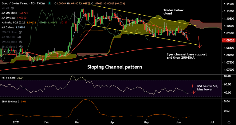 - Price action is below the daily Ichimoku cloud and Chikou span is biased lower