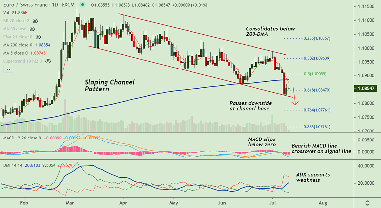 Price action is consolidating break below 200-DMA and bearish bias intact as long as pair holds below.