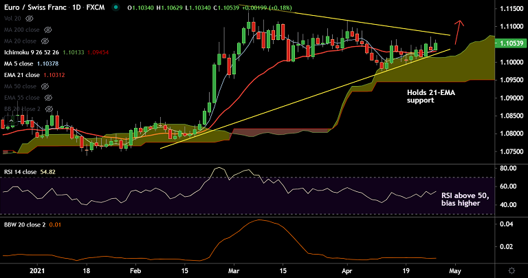 Support levels - 1.1037 (5-DMA), 1.1031 (21-EMA), 1.1025 (Trendline)