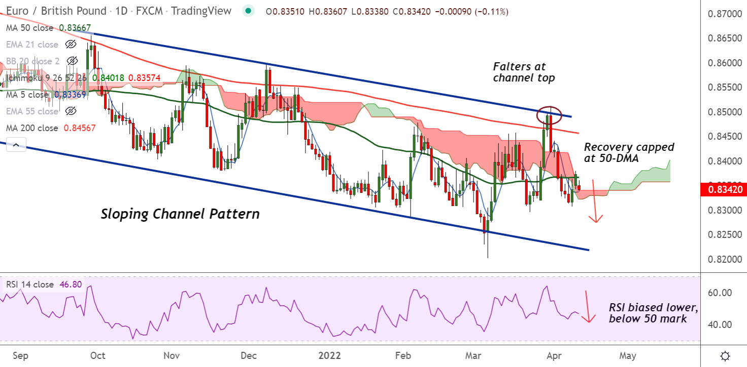 Summary: EUR/GBP was trading with a neutral bias. Break below cloud will drag the pair lower to test channel base. On the flipside, retrace above 50-DMA will see upside continuation.